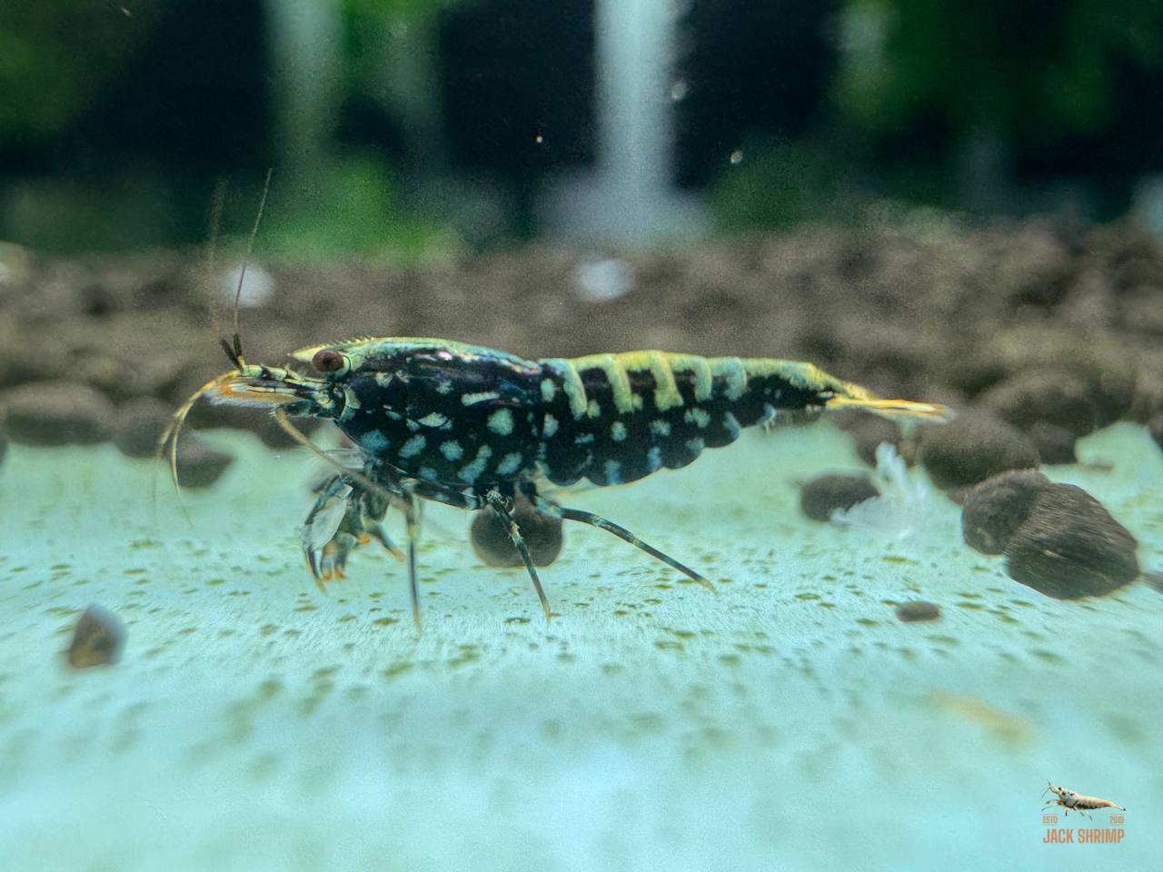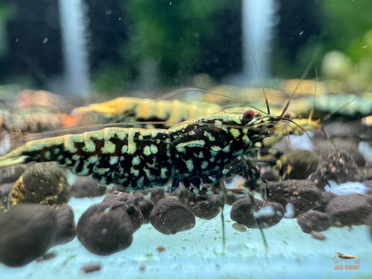 This listing includes 1 trio (1 male + 2 females), selected from healthy breeding stock at Jack Shrimp Farm.